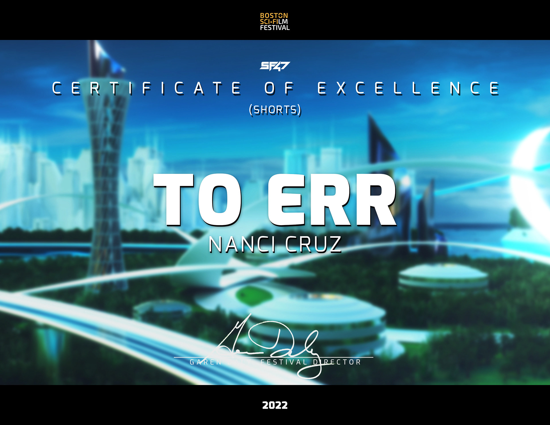 * 7th Sci-On! Film Festival 2022 - 6th May 2022 (Official Selection Shorts) - Winner for Best Live Action Short Film & Winner Roddenberry Audience Choice Award. (USA)